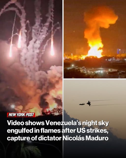 Venezuela’s night sky was engulfed in flames Saturday as the US launched large-scale strikes on the country’s capital city and captured defiant dictator Nicolás Maduro.